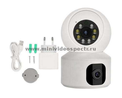 Беспроводная 3G/4G миниатюрная IP камера 2+2mp с SIM картой и двойной камерой позволяет пользователям просматривать изображение дистанционно со смартфонов (Android и iOS) и оснащена двумя объективами –направленным и поворотным с дистанционным управлением.